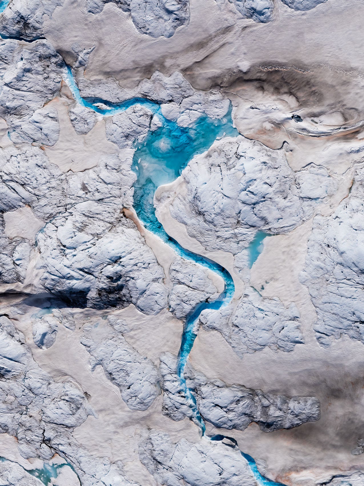 As temperatures rise, surface melting intensifies and snow cover retreats earlier each season. Meltwater begins to collect in depressions on the ice, forming pools that can last for weeks or months. Beyond their surface beauty, these pools play an active role in weakening glaciers. When enough water gathers, it can create pressure deep into the ice, carving vertical shafts and reaching the glacier bed, where it accelerates movement and internal deformation.