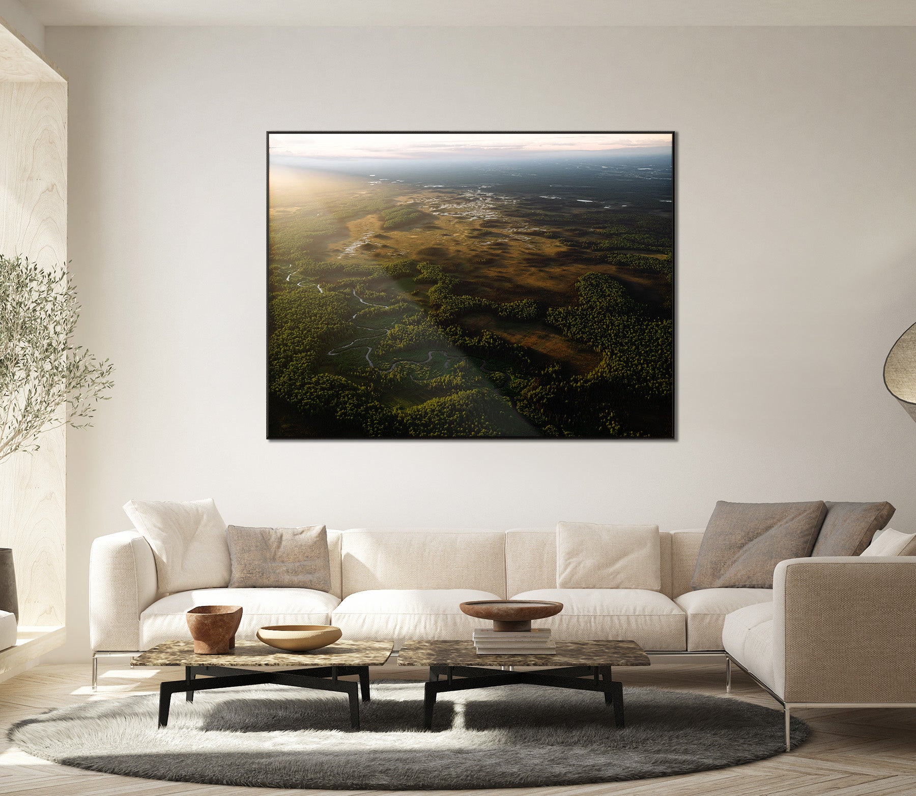 The artwork will be printed on highest quality photo paper and mounted on a aluminium Dibond backing including a UV protective laminate on the front.