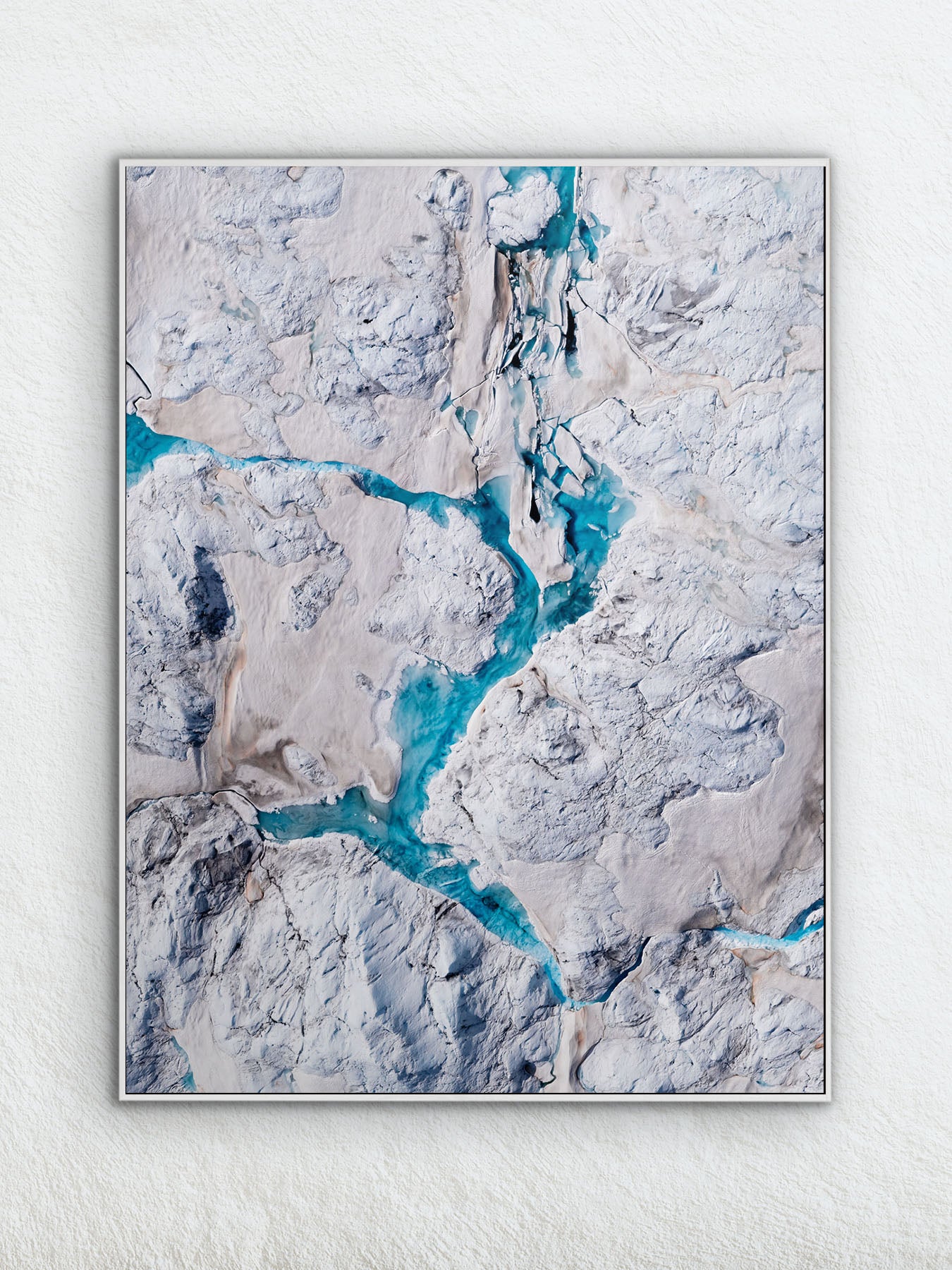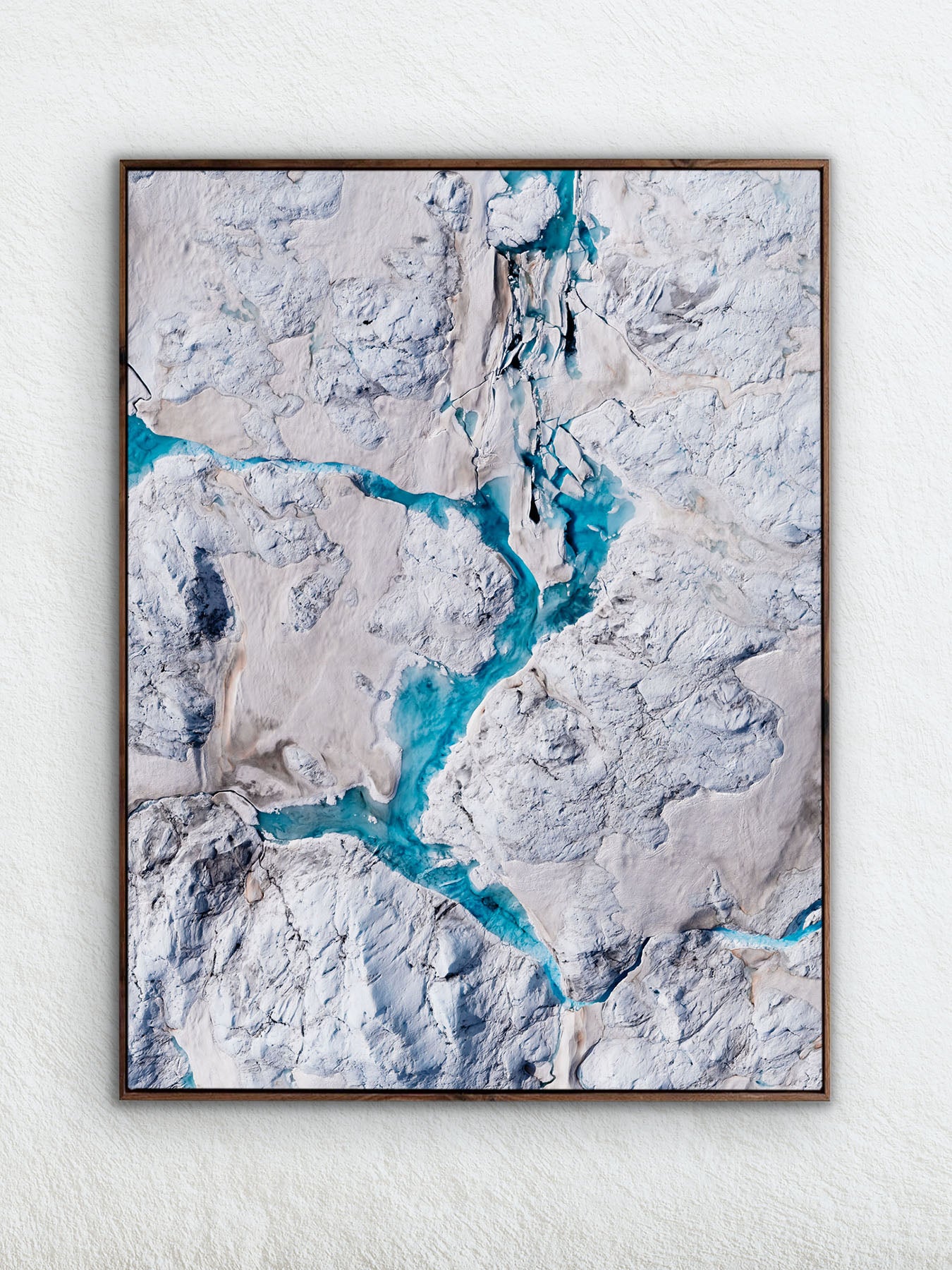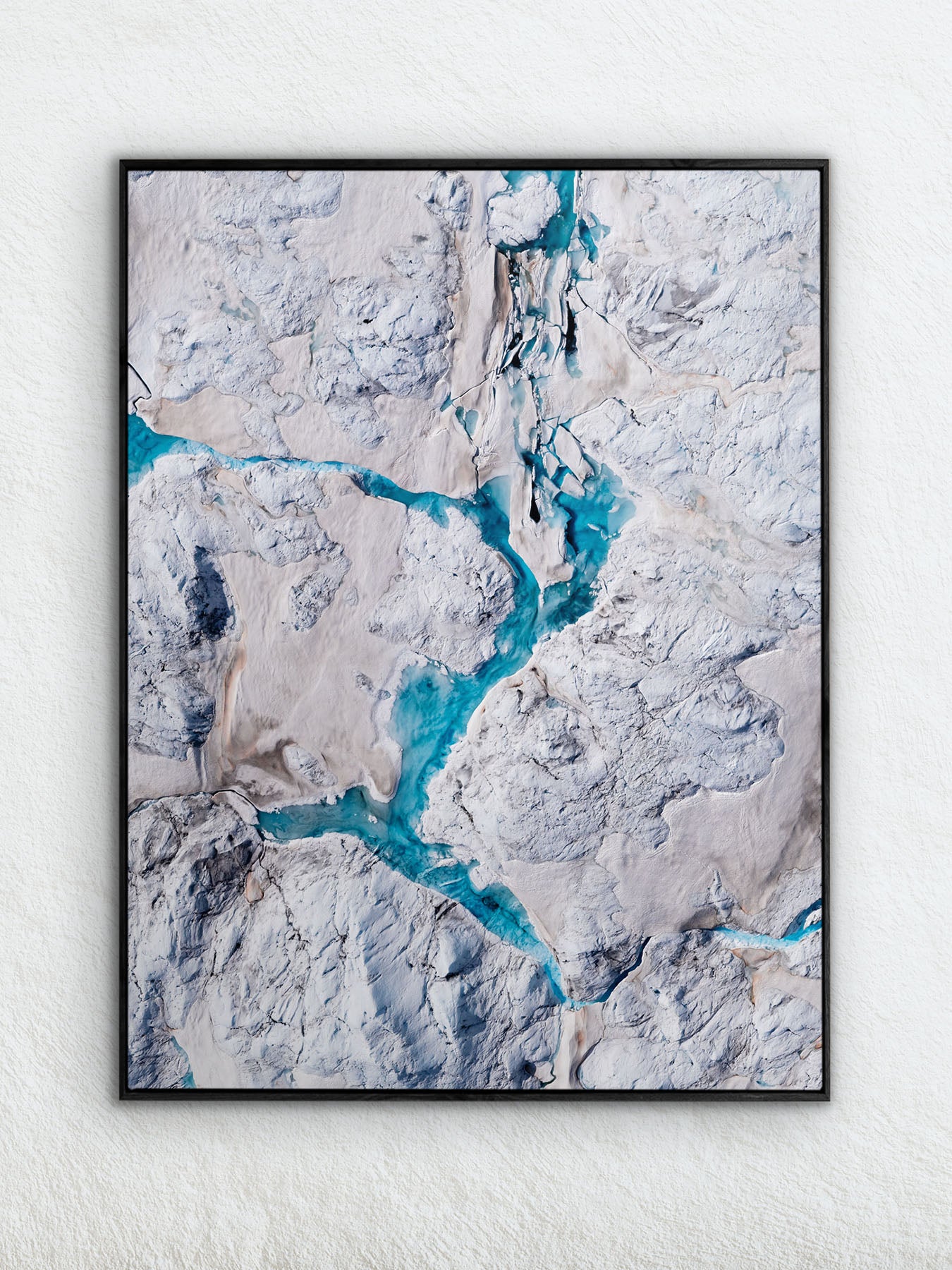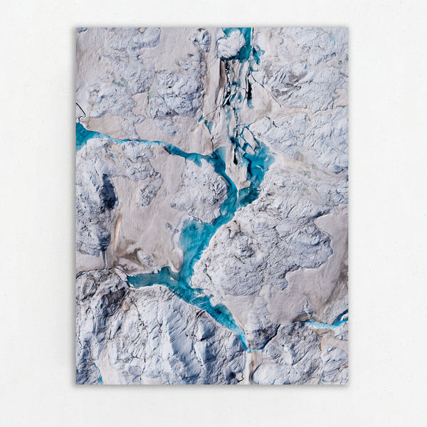 As temperatures rise, surface melting intensifies and snow cover retreats earlier each season. Meltwater begins to collect in depressions on the ice, forming pools that can last for weeks or months. Beyond their surface beauty, these pools play an active role in weakening glaciers. When enough water gathers, it can create pressure deep into the ice, carving vertical shafts and reaching the glacier bed, where it accelerates movement and internal deformation.