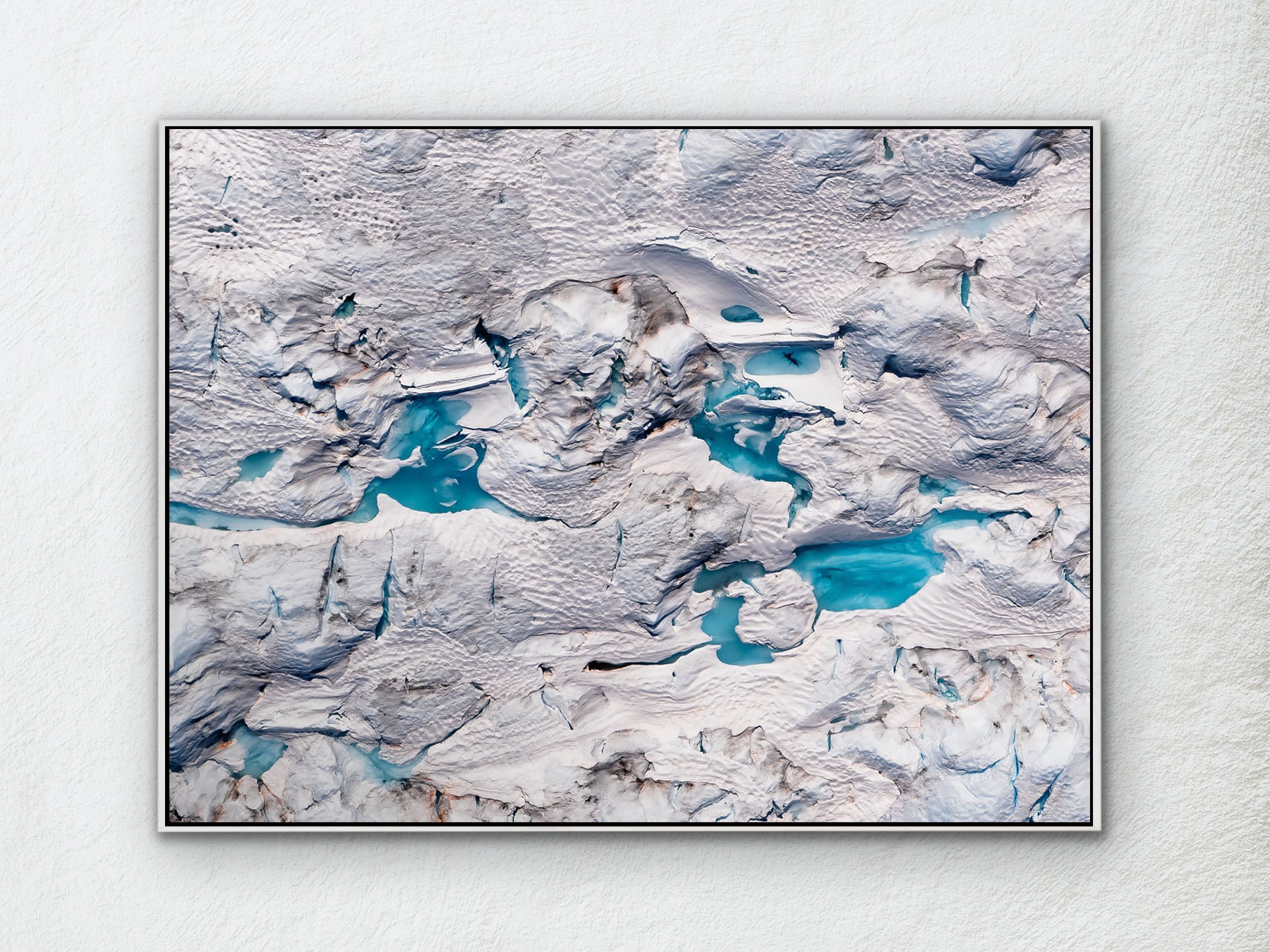 As temperatures rise, surface melting intensifies and snow cover retreats earlier each season. Meltwater begins to collect in depressions on the ice, forming pools that can last for weeks or months. Beyond their surface beauty, these pools play an active role in weakening glaciers. When enough water gathers, it can create pressure deep into the ice, carving vertical shafts and reaching the glacier bed, where it accelerates movement and internal deformation.