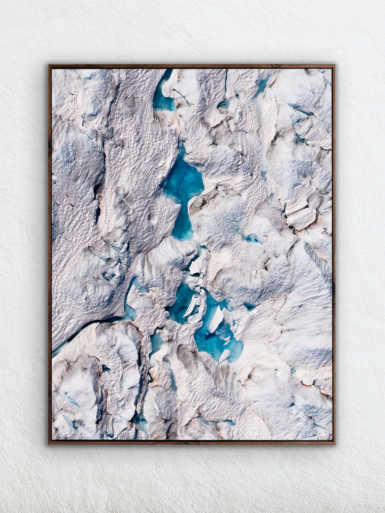 As temperatures rise, surface melting intensifies and snow cover retreats earlier each season. Meltwater begins to collect in depressions on the ice, forming pools that can last for weeks or months. Beyond their surface beauty, these pools play an active role in weakening glaciers. When enough water gathers, it can create pressure deep into the ice, carving vertical shafts and reaching the glacier bed, where it accelerates movement and internal deformation.