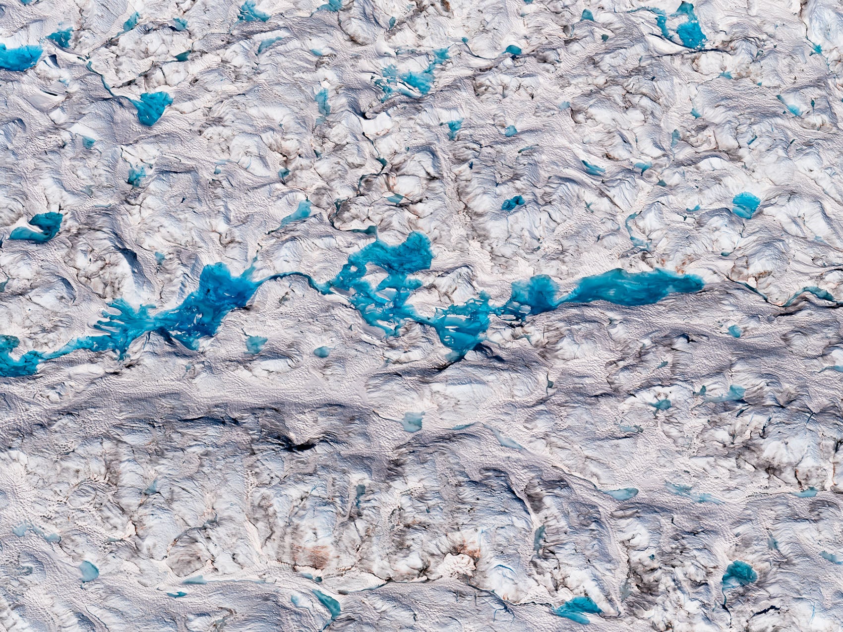 As temperatures rise, surface melting intensifies and snow cover retreats earlier each season. Meltwater begins to collect in depressions on the ice, forming pools that can last for weeks or months. Beyond their surface beauty, these pools play an active role in weakening glaciers. When enough water gathers, it can create pressure deep into the ice, carving vertical shafts and reaching the glacier bed, where it accelerates movement and internal deformation.